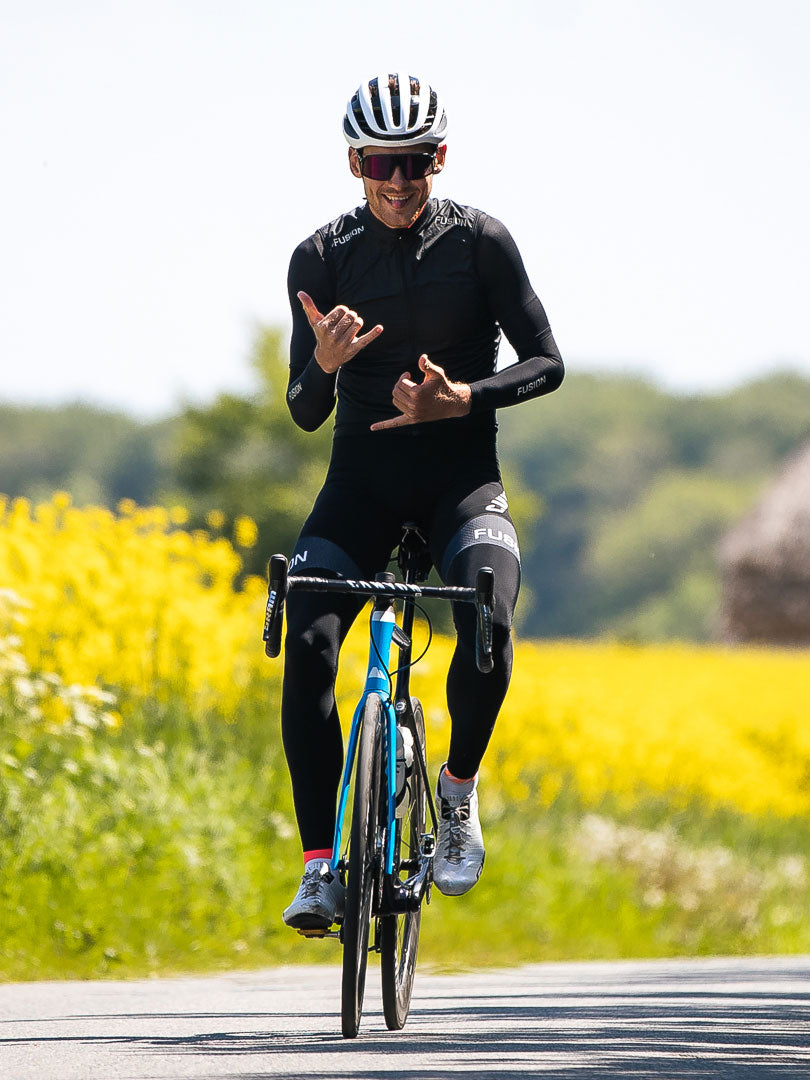 Ihre engmaschige Konstruktion ist sehr elastisch, so dass sie Ihre Bewegungsfreiheit beim Radfahren nicht beschränkt. Die Ärmel liegen eng am Körper und die aufgeraute Fleece-Innenseite sorgt für Komfort durch moderate Winddichtigkeit und Thermoregulation. Die silikonbeschichteten Kantenbänder sorgen dafür, dass sie während der gesamten Fahrt an Ort und Stelle bleiben.